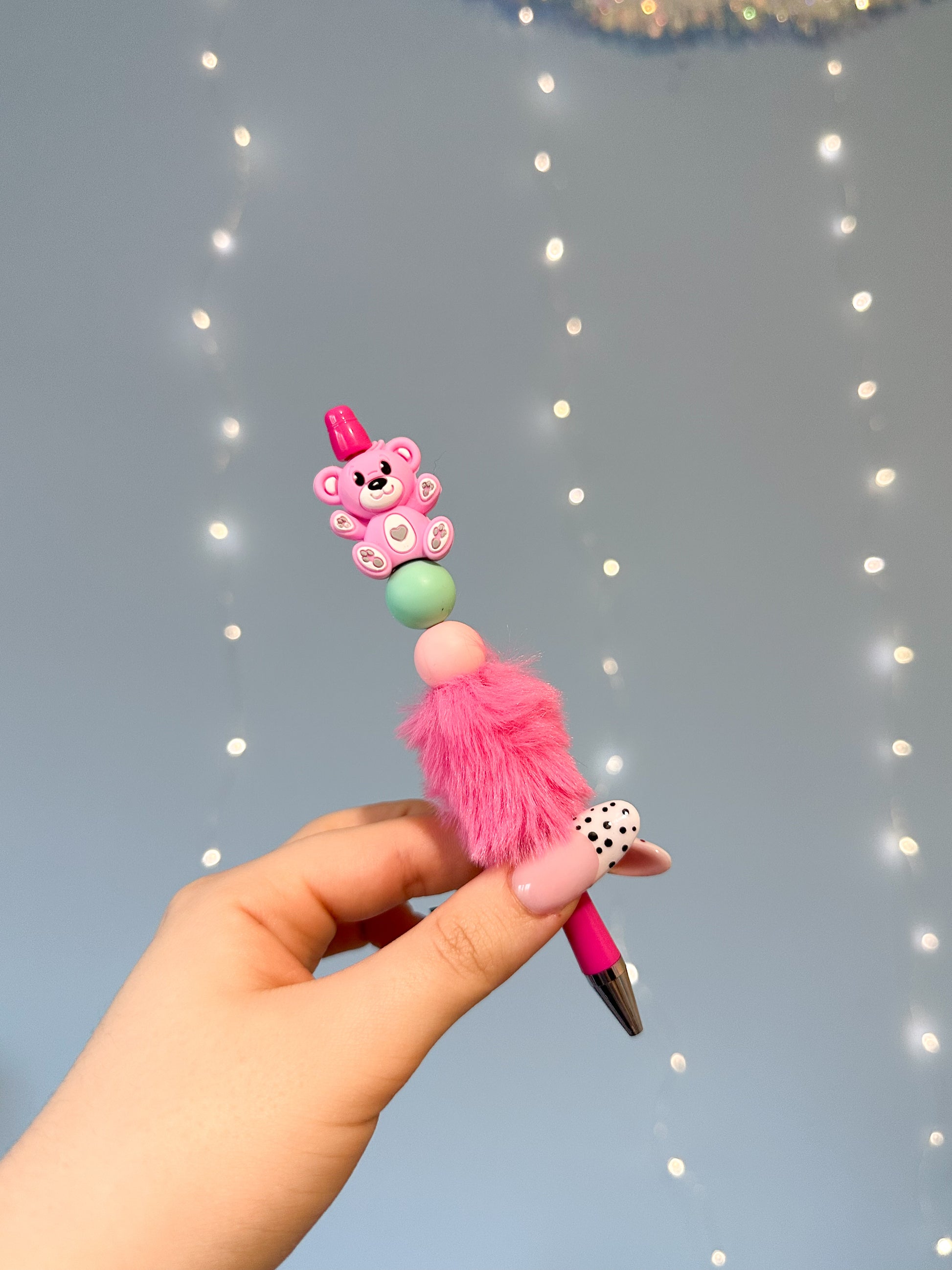 Dieser liebevoll handgefertigte Kugelschreiber mit hochwertigen Silikonperlen ist mehr als nur ein Schreibgerät – er ist ein echtes Design-Highlight. Jede Perle wird sorgfältig ausgewählt und von Hand aufgezogen, sodass jedes Stück ein Unikat ist.